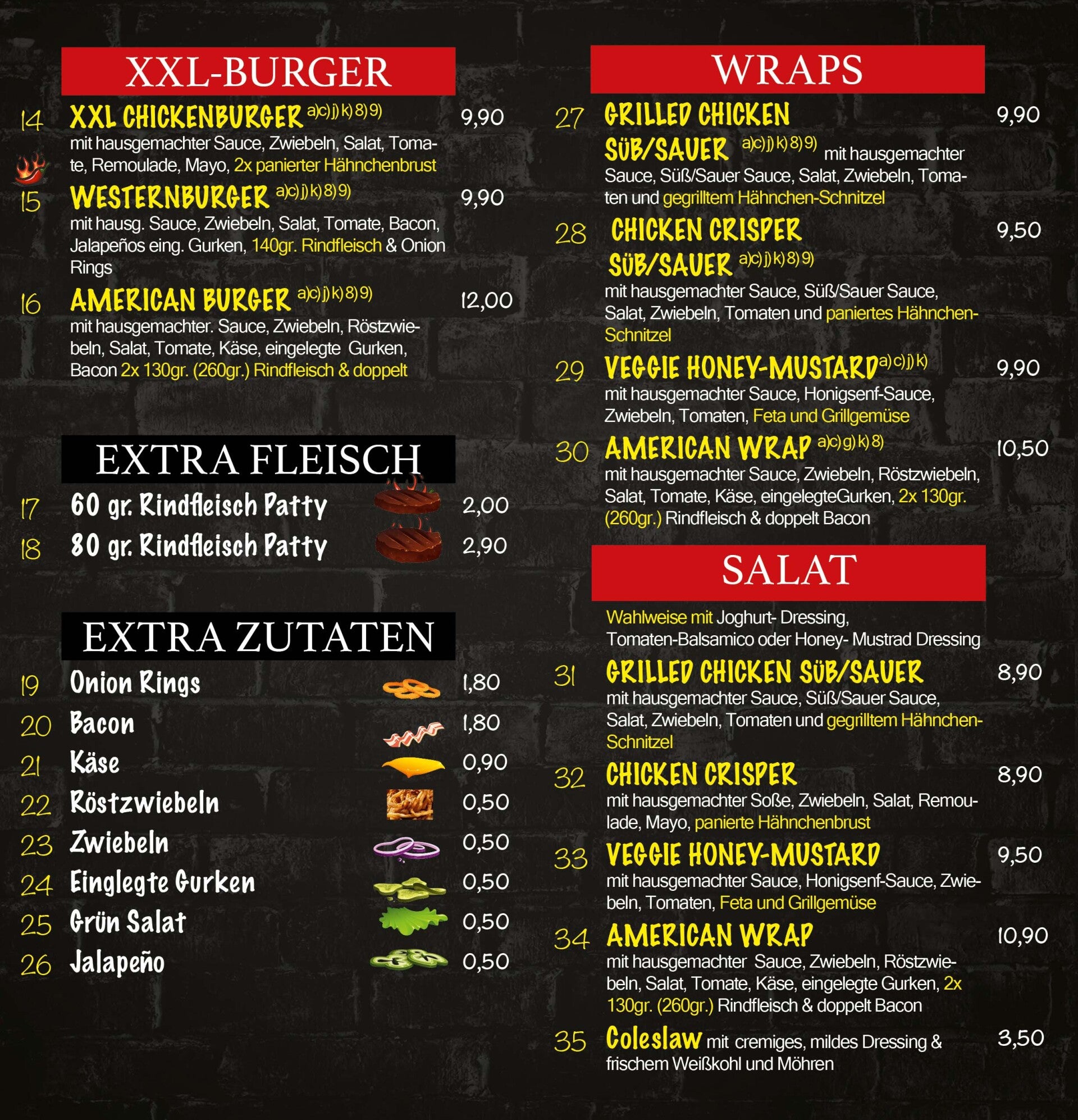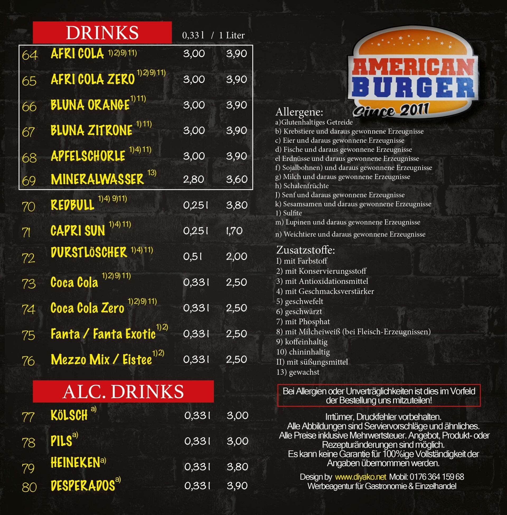 Hinweis: American Burger übernimmt keine Haftung für Unverträglichkeiten jeglicher Art.